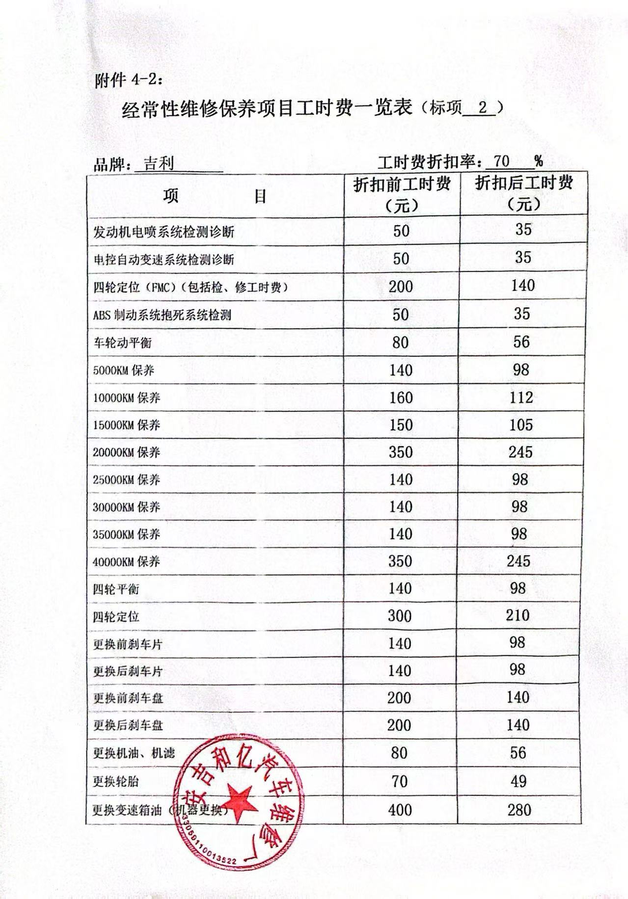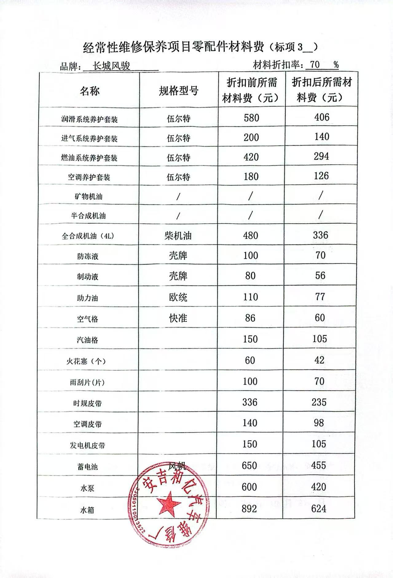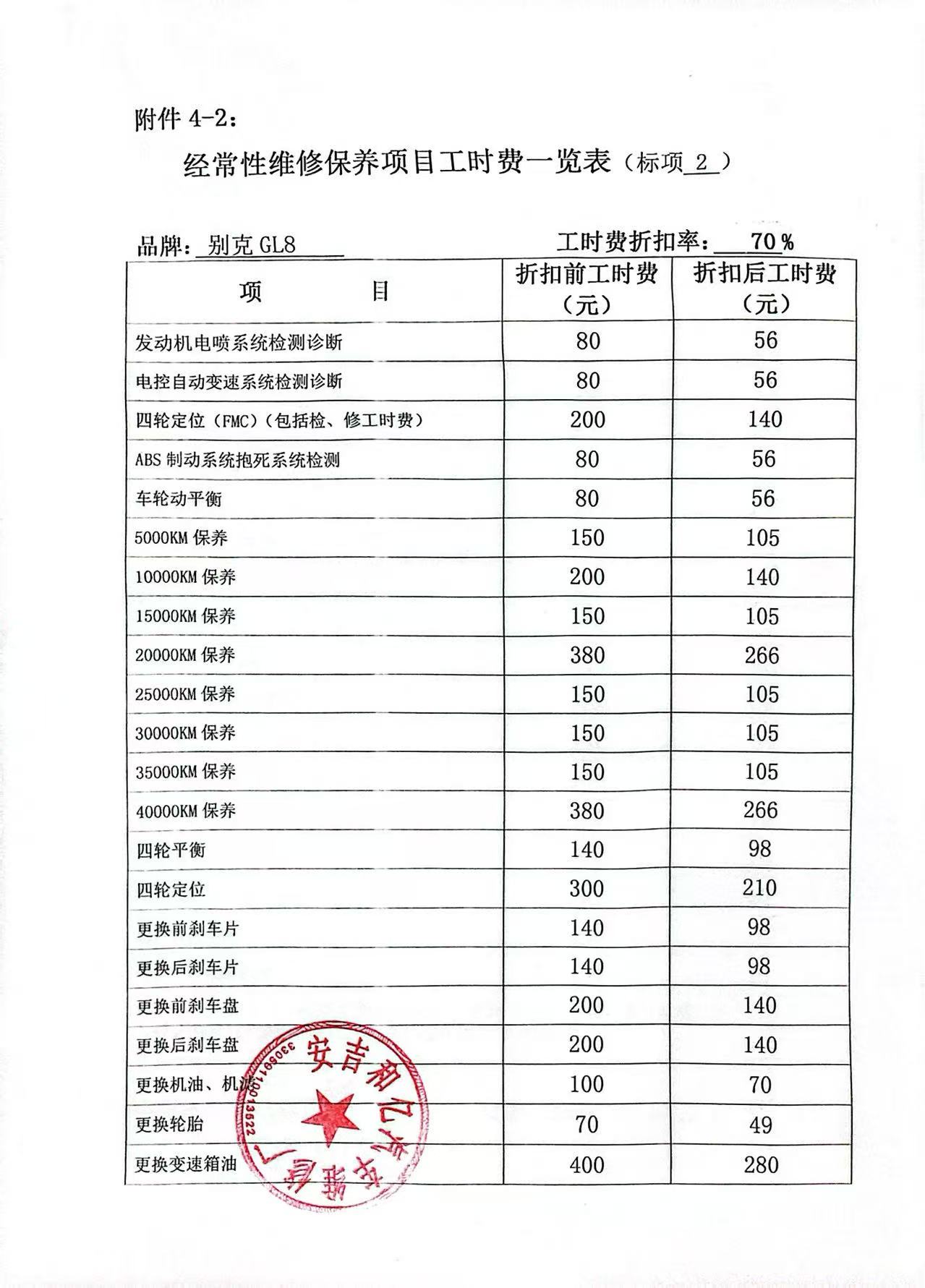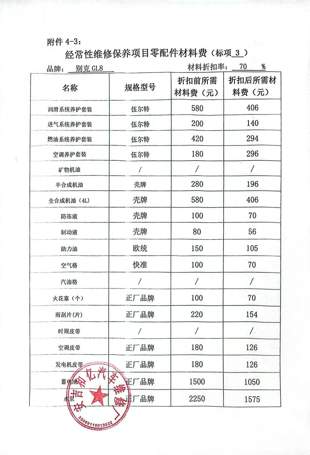| 一、二类维修供应商(综合修理类) | ****一、二类维修供应商(综合修理类) | 服务方案: 我们的服务流程: 1. 接车诊断:客户到店后30分钟内完成初步检测,出具书面故障报告与报价单。 2. 维修执行:全程可视化(如提供维修进度照片/视频),关键步骤需客户确认后再操作。 3. 质检交付:维修后进行3重质检(技师自检、车间复检、出厂终检),交付时提供维修清单与质保凭证。 服务承诺: 质量保证,交货及时,价格合理,服务周到。 报价一览表:报价一览表.jpg 经常性维修保养项目工时费一览表:经常性维修保养项目工时费一览表1.jpg 经常性维修保养项目工时费一览表2.jpg 经常性维修保养项目工时费一览表3.jpg 经常性维修保养项目工时费一览表4.jpg 经常性维修保养项目工时费一览表5.jpg 经常性维修保养项目工时费一览表6.jpg 经常性维修保养项目工时费一览表7.jpg 经常性维修保养项目工时费一览表8.jpg 经常性维修保养项目零配件材料费:经常性维修保养项目零配件材料费1.jpg 经常性维修保养项目零配件材料费2.jpg 经常性维修保养项目零配件材料费3.jpg 经常性维修保养项目零配件材料费4.jpg 经常性维修保养项目零配件材料费5.jpg 经常性维修保养项目零配件材料费6.jpg 经常性维修保养项目零配件材料费7.jpg 经常性维修保养项目零配件材料费8.jpg | 优惠率 70% |